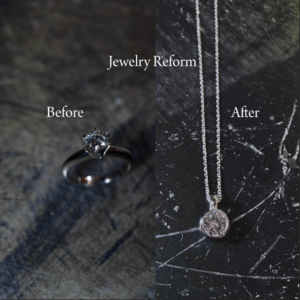 立て爪に留まったダイヤモンドリングを、一粒ネックレスへとリフォームしました。