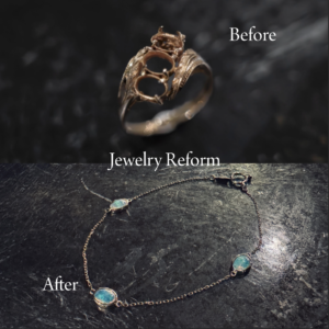 思い出深いオパールが3つ並ぶリングを、手元で上品に輝くブレスレットへとリフォームいたしました。
